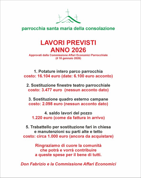 Per informazioni puoi rivolgerti sempre al parroco (don Fabrizio)