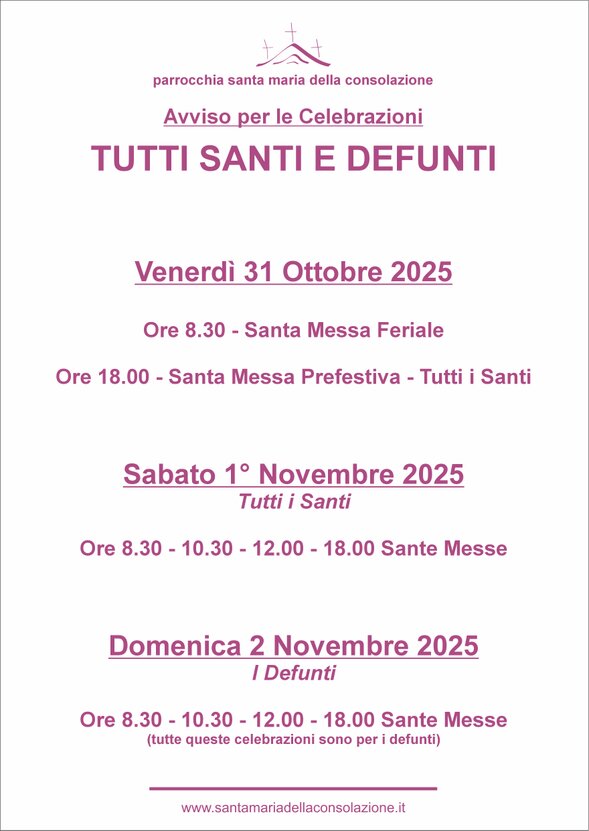 Il Sabato: 8.30, 18.00 (Prefestiva)