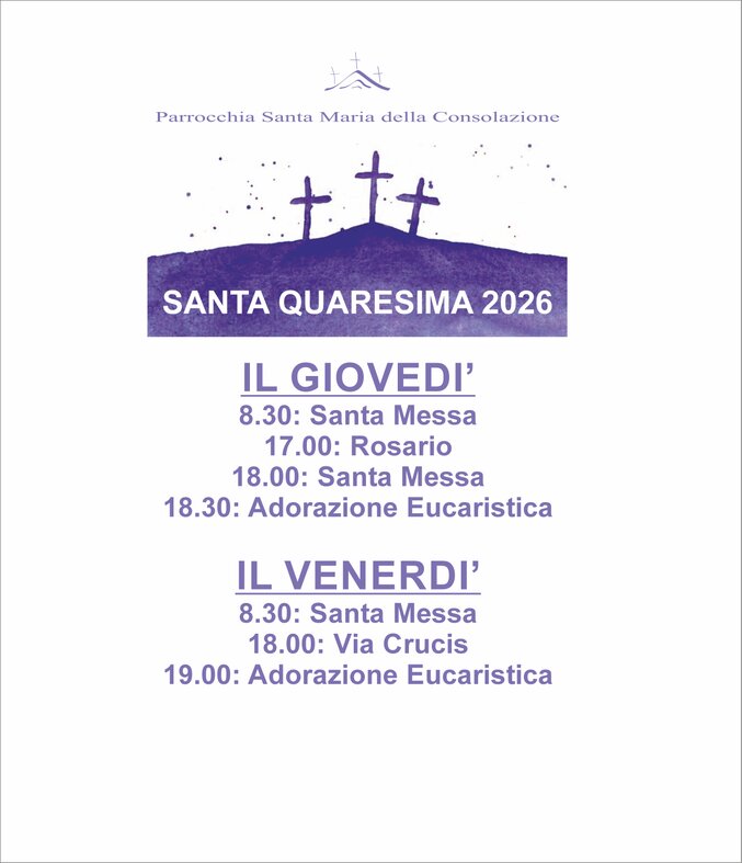 Il Giovedì: 8.30 e 18.00 (al termine Adorazione)