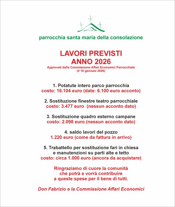 Per informazioni puoi rivolgerti sempre al parroco (don Fabrizio)