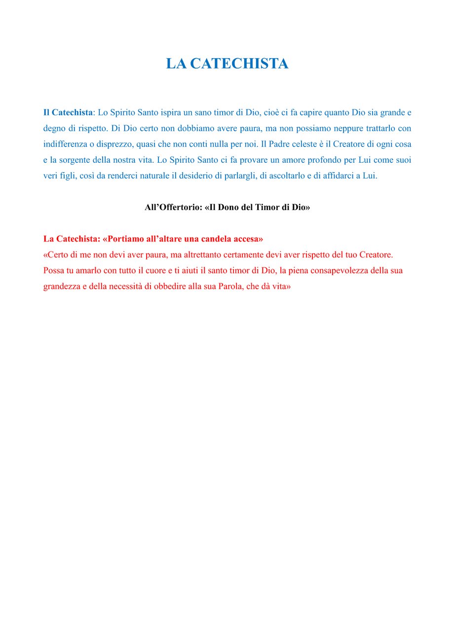 PREGHIERE E SEGNO DELL'OFFERTORIO