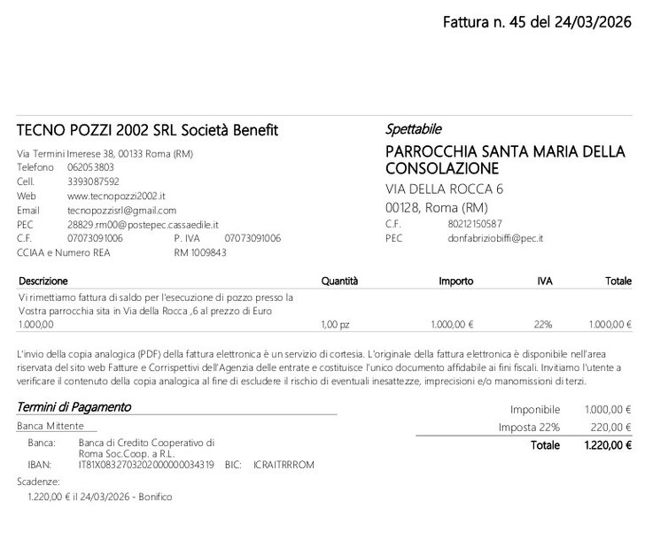 Realizzazione del Pozzo: 10.500 euro (+ IVA)