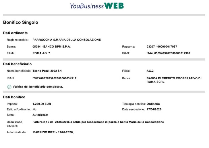 | Anno 2026 dare a saldo: 1.000 + IVA al 03.03.2026 SALDATO IL 17.04.2026 | 1220 euro | 500 euro |